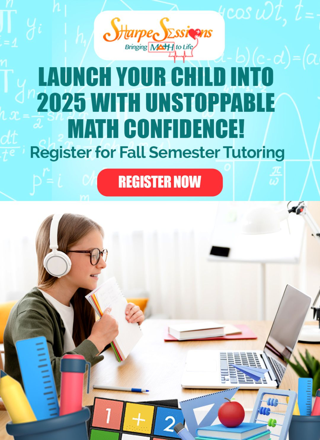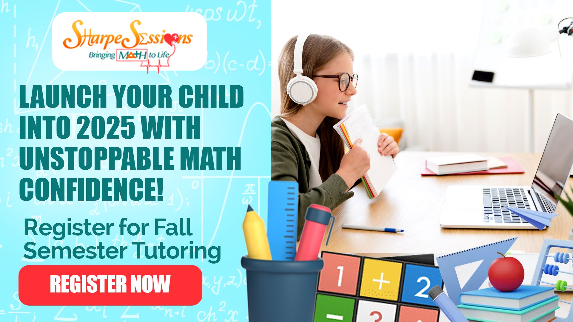 Help your child get the guidance they need in math class with Sharpe Sessions! Our online math tutoring sessions will help your child move from performing average to graduating valedictorian! Â